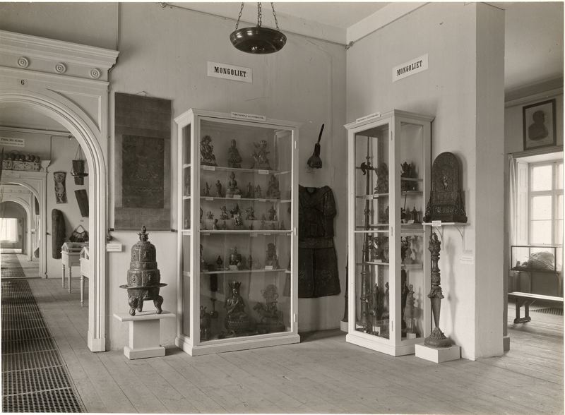 Sal 6: Tibet och Siam. Tibetanska föremål ur redaktör J. M. Olléns samling, Tibetanska kultföremål från södra Mongoliet (text på fotografi). Siam Vanadis, dep HKH Prins Wilhelm. Vidare C.F. Hultgren och greve N. Gyldenstolpes samlingar.